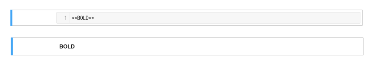 강조를 위해서 글자를 굵게 할 수도 있는데 **를 앞뒤로 두 개씩 붙여주면 된다. 참고로 하나씩만 붙이면 이탤릭체가 된다.