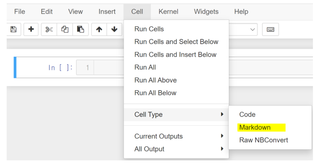 반대로 마크다운 셀을 Code 셀로 변경하려면 Ctrl + Y를 이용하면 된다.