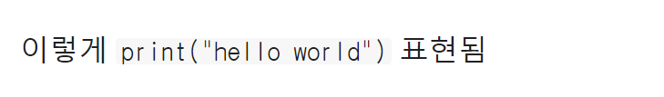 만약 코드를 여러 줄 이아니고 간단하게 넣고 싶다면 억음부호를 앞뒤로 하나씩만 넣어주면 된다. 이렇게 사용하면