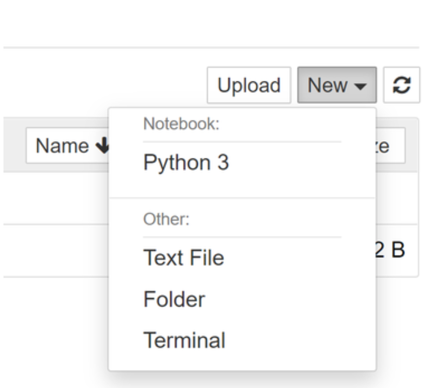 오른쪽 상단의 NEW > Python3를 누르면 자동으로 주피터노트북 파일이 생성된다. 만약 폴더를 만들고 싶다면 Folder를 누르면 새 폴더를 만들 수 있다. 생성된 파일은 자동으로 Untitled 라는 이름이 붙게된다.