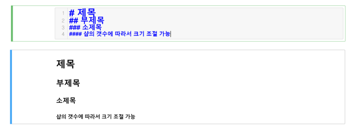 글자 크기는 #을 이용해서 할 수 있는데, 하나부터 최대 6개까지 앞에 붙여서 크기를 조절할 수 있다.