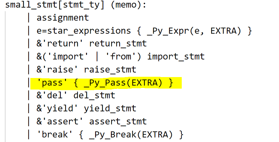 파이썬의 문법 파일은 파서 표현식 문법(Parsing Expression Grammer, PEG) 사양을 사용한다.