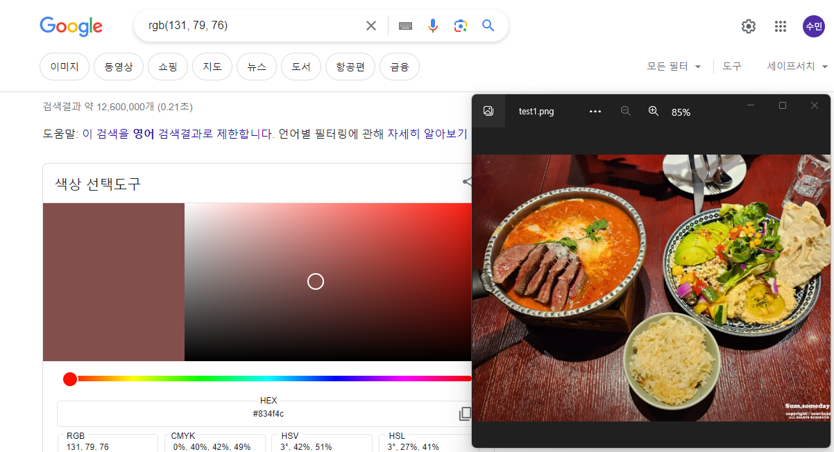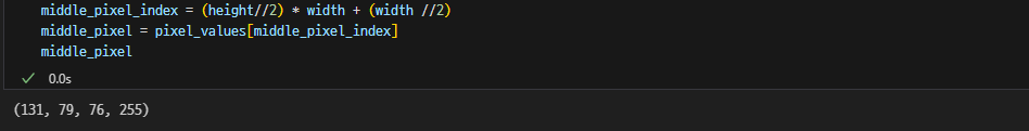 우리가 불러왔던 이미지의 가운데 색상인 적갈색이 잘 출력된 것을 확인할 수 있다.