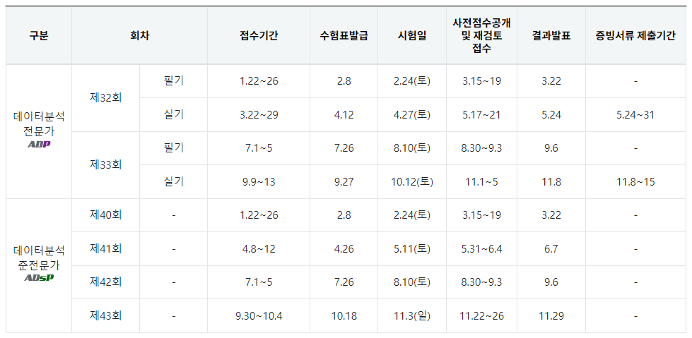항상 조각조각 나있고, 찾기도 힘든 데이터관련 자격증들 시험 접수 일정을 모아봤다.