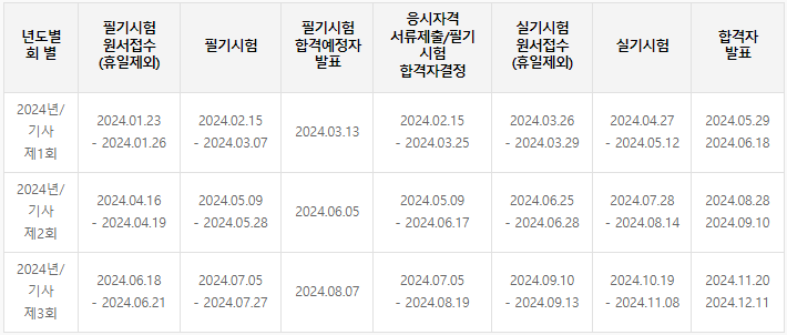 정보처리기사는 위의 두 자격증들과는 다르게 총 3번의 시험이 있다.