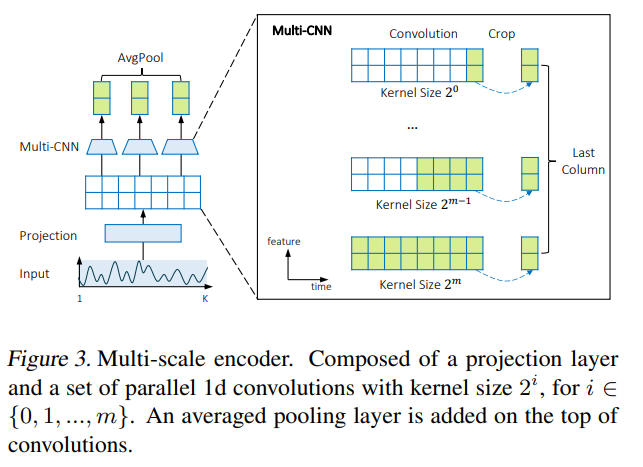 - 인코더의 경우, local 과 global 패턴을 모두 추출할 수 있도록 하기 위해 서로 다른 커널 사이즈를 가진 여러 컨볼루션 블록을 이용